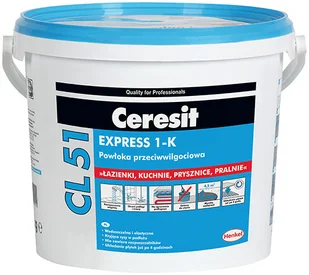 Powłoka przeciwwilgociowa EXPRESS 1-K firmy Ceresit w 5 kg wiadrze. Folia izolacyjna w płynie służy do wykonywania elastycznych powłok uszczelniających pod płytki ceramiczne. Produkt dobrze kryje rysy w podłożu i spełnia wymagania izolacji typu lekkiego. Idealnie sprawdzi się przy wykańczaniu łazienki czy kuchni w celu dokładnego zabezpieczenia podłoża. Folia jest produktem gotowym do uzycia zaraz po zakupie i możną ją stosować na ogrzewanie podłogowe.
