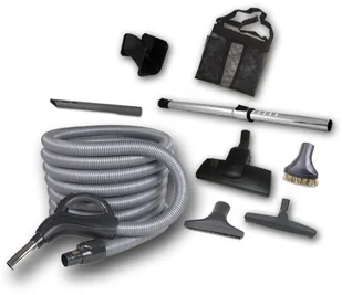 Zestaw sprzątający Cyclovac Magnum z wężem On/Off 9m. W skład zestawu wchodzą wysokiej klasy elementy jak ze zdjęcia, mianowicie: