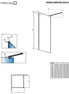 Radaway Modo New Black II Ścianka prysznicowa Walk-In 150x200 cm profile czarne szkło przezroczyste 389154-54-01 - Napisz do nas i zyskaj dodatkowy rabat