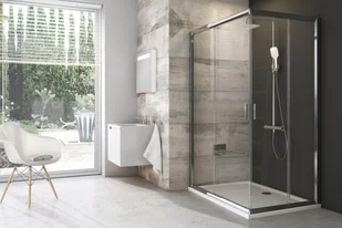 Seria BLIX UWAGA ! Opakowanie zawiera 1 sztukę produktu. Kompletując kabinę narożną należy zamówić 2 sztuki produktu. Modne wzornictwo Wyglądu produktu nie zakłócają wewnętrzne profile pionowe. Konstrukcja oparta została na 6 mm taflach szkła hartowanego, zawieszonych na wysokiej jakości rolkach w poziomych profilach prowadzących. Praktyczny uchwyt Ergonomiczny uchwyt w kolorze polerowanego aluminium umożliwia wygodne i łatwe otwieranie drzwi.