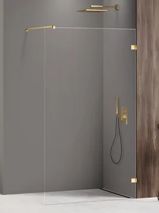 EXK-7060 Avexa Gold Shine - złoty połysk ścianka walk-in posiada eleganckie detale w kolorze jasnego złota, o połyskowym wykończeniu. Kabina wyposażona jest w bezpieczne, hartowane szyby o grubości 6mm, z powłoką ochronną Active Shield. Kolekcja objęta 7-letnim okresem gwarancji.