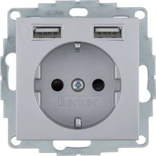 Berker 48031404, Type F + 2 x USB A, USB 2.0, Aluminium, Termoplastyczny, IP20, 250 V