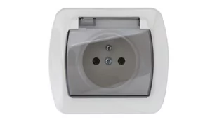 Pojedyncze gniazdo z uziemieniem i klapką dymną serii AKORD - system monoblok (z nierozbieralną ramką). Wybierz jeden spośród czterech wariantów kolorystycznych!