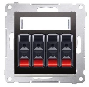 Gniazdo podtynkowe Kontakt-Simon 54 DGL34. 01/48 głośnikowe 4-krotne z polem opisowym antracyt Specyfikacja Gniazda antenowe, głośnikowe i HDMI Tworzywo sztuczne, PC, Bezhalogenowe Stopień ochrony: IP20 Pazurki / wkręty Wymiary: kwadrat o boku 7,5 cm "Simon 54" to nowoczesna linia premium osprzętu elektro-instalacyjnego oparta o nowe, niezawodne i przyjazne w montażu mechanizmy, wyróżniająca się szlachetną formą oraz bogatą kolorystyką. Osprzęt funkcjonuje jako system ramkowy, symetryczny który umożliwia zamontowanie produktu w opcji poziomej i pionowej.