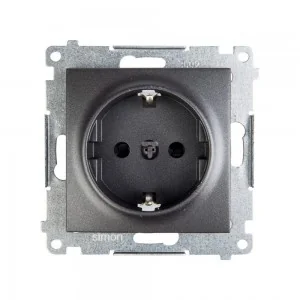 Simon 54 Gniazdo pojedyncze SCHUKO z/u 16A IP20 z przesłoną torów, szybkozłącza, antracyt DGSz1CZ.01/48