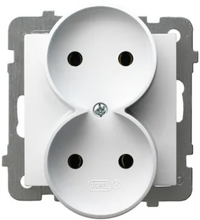 Gniazdo podwójne bez uziemienia białe GP-2GR/m/00 serii As, firmy Ospel. Ten popularny model kontaktu podwójnego bez bolca pozwala na podpięcie dwóch urządzeń do jednego modułu gniazda. Gniazdko GP-2GR/m/00 sprawdzi się wszędzie tam, gdzie brakuje kontaktów, nie ma możliwości rozbudowy instalacji elektrycznej lub po prostu ma miejsca na kolejne gniazdko. Gniazdo wymaga ramki wykończeniowej tej samej serii. Prosta i przyjemna stylistyka serii As doskonale sprawdzi się w każdym domu, biurze, czy budynku użyteczności publicznej.