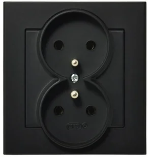 Gniazdo wtyczkowe, podwójne, z uziemieniem, przeznaczone do montażu podtynkowego. Produkt wykonany z tworzywa sztucznego w kolorze czarny metalik, z ramką zewnętrzną. Stopień ochrony wynosi IP20, maksymalne natężenie 16A.