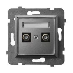 Gniazdo antenowe typu "F" podwójne umożliwia estetyczne podłączenie dwóch niezależnych urządzeń do odbioru telewizji w miejscach gdzie nie występuje rozbudowana instalacja kablowa. Gniazdo antenowe jest przeznaczone do stosowania w antenowych instalacjach indywidualnych i służy do przyłączania urządzeń abonenckich typu tuner satelitarny do tych sieci. Do kompletu wymagana ramka. Można stosować do systemów ramkowych wielokrotnych.