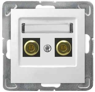 Gniazdo wtyczkowe Ospel Impresja GGN-1Y/m/00 pojedyncze głośnikowe białe Specyfikacja Gniazda głośnikowe Przyłączalność przewodów: 6 mm 2 Stopień ochrony: IP20 Tworzywo sztuczne, metal Pazurki / śruby Wymiary: kwadrat o boku 7,1 cm Seria modułowa łączników i gniazd podtynkowych, dostępna w tradycyjnej bieli oraz kolorach: ecru, srebro, tytan, złoty metalik,antracyt.