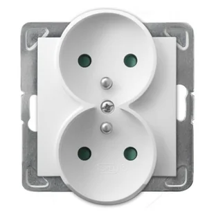 Ospel Gniazdo podwójne Ospel Impresja GP-2YRAZP/m/00 z uziemieniem z przesłonami do ramek Prestige białe