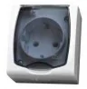 Ospel Gniazdo pojedyncze z uziemieniem schuko, wieczko przezroczyste, BIAŁY - wieczko w kolorze dymnym GNH-1NS/00/d