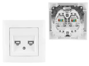 Gniazdo Komputerowe Internetowe Podwójne 2x RJ45 Gniazdko Podtynkowe Białe