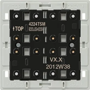 : UDS 4 REGHE lub innych systemów sterowania (np. sterowanie PLC, systemy Eltako itp.) o napięciu sterowania maks. 24 V AC/DC (SELV), 20 mA. Podłączenie odbywa się za pomocą bloku zacisków z tyłu. Dwie czerwone diody LED na przycisk sygnalizują odpowiedni status przełączania. Przełącznik elektryczny Jung 4224 TSM (4224TSM)