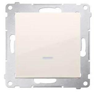 Łącznik podtynkowy Kontakt-Simon 54 DW1ZL. 01/41 jednobiegunowy z sygnalizacją załączenia LED kremowy Specyfikacja Łączniki i przyciski IP20/IP44 Prąd znamionowy: 10AX Napięcie znamionowe: 250V Tworzywo sztuczne, PC, Bezhalogenowe Stopień ochrony: IP20/IP44 Pazurki / wkręty Wymiary: