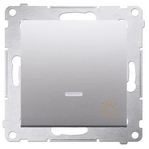 Przycisk podtynkowy Kontakt-Simon 54 DS1L. 01/43 "światło" z podświetleniem LED srebrny mat Specyfikacja Łączniki i przyciski IP20/IP44 Napięcie znamionowe: 250V Prąd znamionowy świetlówkowy: 10AX Tworzywo sztuczne, PC, Bezhalogenowe Stopień ochrony: IP20/IP44 Pazurki/wkręty Symbol ,,światło" Wymiary:
