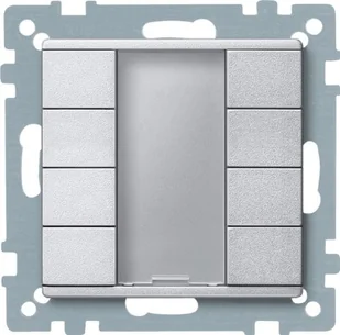 System magistrali KNX tak, System magistrali KNX bezprzewodowy nie, System magistrali bezprzewodowy nie, System magistrali LON nie, System magistrali Powernet nie, Inne systemy magistrali nie, Radio dwukierunkowe nie, Typ montażu podtynkowy, Z zabezpieczeniem przed kradzieżą/demontażem nie, Z podłączeniem do magistrali tak, Liczba punktów sterowania 8, Liczba przycisków 8, Z sygnalizacją LED tak, Z polem do etykietowania tak, Z wyświetlaczem nie, Materiał poliwęglan, Jakość materiału tworzywo termoplastyczne, Powierzchnia lakierowana, Wykończenie powierzchni mat, Kolor aluminium, Przezroczysty nie, Z termostatem pokojowym nie, Z czujnikiem podczerwieni nie, Stopień ochrony (IP) IP20, Min. Głębokość gniazda urządzenia 46 mm W wersji System M. Ze zintegrowanym sprzęgłem magistrali. Przycisk z 8 przyciskami obsługi, wyświetlaczem obsługi i stanu oraz polem tekstowym. Wyświetlacz operacyjny może być również jako lampka orientacyjna.