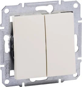 Łącznik świecznikowy w kolorze kremowym, serii Asfora, marki Schneider Electric, o numerze katalogowym EPH0301423. Urządzenie może byc wykorzystywany jako tradycyjny włącznik światła lub służyć do załączania innych urządzeń o maksymalnym poborze prądu do 10 AX. Podłączenie przewodów za pomocą zacisków śrubowych. Długie i solidne pazury utrzymywane są za pomocą metalowych prowadnic w pozycji pionowej, co ułatwia montaż oraz zwiększa bezpieczeństwo podczas mocowania mechanizmu w puszce instalacyjnej. Mechanizm posiada czytelny schemat oraz oznaczenie zacisków ułatwiające podłączenie.