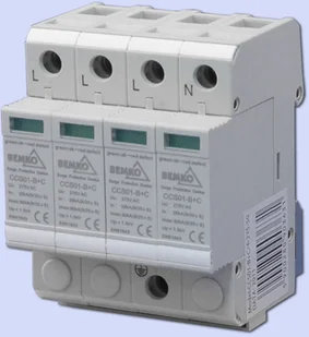 Prezentowany ogranicznik przepięć posiada konstrukcję modułową (zajmuję 4 moduły po 17,5mm), montujemy go na szynę TH35 DIN.