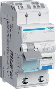 Hager ADS916D automatyczny wyłącznik ochronny różnicowoprądowy B 16 A 30 mA, zabezpieczenie 2-biegunowe, 1-biegunowe ADS916D