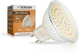 sebson MR16 lampa SMD LED o mocy 3,5 W, zamiennik tradycyjnych żarówek o mocy 30 W, gwint GU5,3, ciepła biała barwa światła, natężenie światła 280 lm, kąt świecenia 110°, zestaw 1-cz. MR16_SMD5060