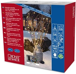 Konstsmide 3730 500 LED łańcuch świetlny/na zewnątrz (IP44)/zasilana na baterie: 4 X D 1.5 V (brak w wyposażeniu)/O czujnik światła, 6h i 9H Timer/240 kolorowe diody/czarny przewód (3730-500)