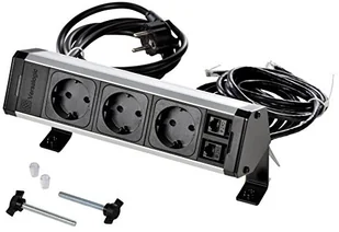 Kopp 939628014 vers adesk uprawy gniazd na pasku, 2RJ-45/11-przyłącza Cat 6 UTP, przewód przyłączeniowy 2 m i 2 m kabel do transmisji danych, IP20, 3400 W, czarna/aluminium anodowane
