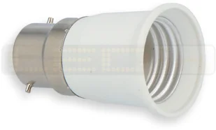Przejściówka żarówki (adapter) B22 > E27 umożliwia zastosowanie żarówki z gwintem E27 (np. żarówki LED) w oprawie B22. Maksymalna moc żarówki 20W.
