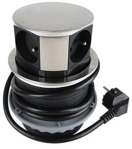 Gniazdo meblowe Ø10cm wysuwane z blatu z przewodem 1.5m. 4x2P+Z. INOX OR-AE-1380