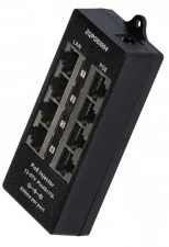 Urządzenie umożliwia zasilenie 4 urządzeń sieci LAN poprzez przewód ethernetowy. Adapter doskonale nadaje się do współpracy z zasilaczami buforowymi (maksymalne napięcie DC 57 V). Urządzenie posiada gniazdo zasilania DC (2,1/5,5).