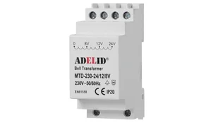 Transformator dzwonkowy Adelid 230 V na 8/12/24 V na szynę
