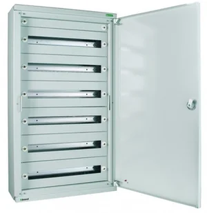 Rozdzielnica kompletna natynkowa zawiera: drzwi, szyny nośne, osłony.