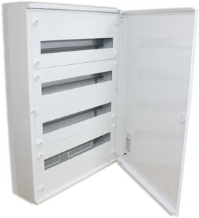 Rozdzielnica BF-O-4/96-P natynkowa 4x24 moduły drzwi metalowe IP 30 285346, firmy Eaton Electric. Rozdzielnica natynkowa 96 modułowa (4 rzędy po 24 moduły w każdym). Blacha stalowa malowana proszkowo, kolor biały. Komplet zawiera: szyny nośne, osłony, zaciski N i PE, drzwi w komplecie. Opcjonalnie istnieje możliwość zamontowania zamka z kluczykiem.