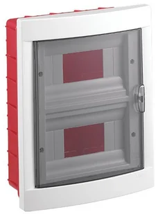 Rozdzielnica z tworzywa, 16-modułowa, dwurzędowa, podtynkowa z zamkiem. W zestawie znajduje się szyna z galwanizowanej stali. Rozdzielnica wyprodukowana jest zgodnie z Dyrektywą niskonapięciową 2006/95/EC.