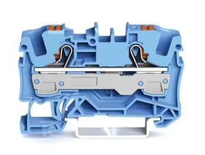 złączka przelotowa 2-przewodowa, z przyciskami, 6 mm2, z otworem pomiarowym, do zastosowań Ex i, opis z boku i na środku, na szynę TS 35 x 15 i 35 x 7,5, Push-in CAGE CLAMP®, 6,00 mm2, niebieski