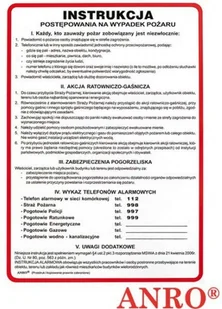 ANRO Znak Bezpieczeństwa "Instrukcja postępowania na wypadek pożaru"