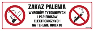 NC088 ZAKAZ PALENIA WYROBÓW TYTONIOWYCH I PAPIEROSÓW ELEKTRONICZNYCH NA TERENIE OBIEKTU, PN - PŁYTA PCV 1MM; (900X300MM)