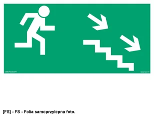 AA004 - Kierunek do wyjścia drogi ewakuacyjnej schodami w dół w prawo 600x300