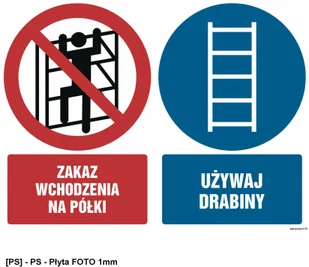 GM028 - Zakaz wchodzenia na półki Używaj drabiny 400x300