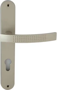 Klamka na długim szyldzie w kolorze nikiel z przebiciem na wkładkę