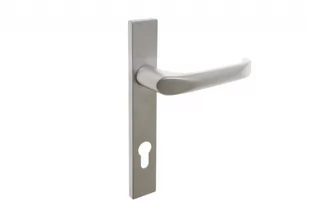 Klamka drzwiowa wykonana ze znalu - stopu cynku i aluminium, stosowana w drzwiach aluminiowych, PVC i wszędzie tam, gdzie z przyczyn kontrukcyjnych wymagany jest wąski szyld klamki (32 mm). Przeznaczona do drzwi o grubości maksymalnej 80 mm. Podana cena obejmuje klamkę na stronę zewnętrzną i klamkę na stronę wewnętrzną drzwi.
