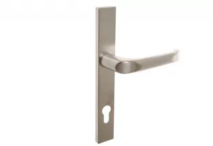 Klamka drzwiowa wykonana ze znalu - stopu cynku i aluminium, stosowana w drzwiach aluminiowych, PVC i wszędzie tam, gdzie z przyczyn kontrukcyjnych wymagany jest wąski szyld klamki (32 mm). Przeznaczona do drzwi o grubości maksymalnej 80 mm. Podana cena obejmuje klamkę na stronę zewnętrzną i klamkę na stronę wewnętrzną drzwi.