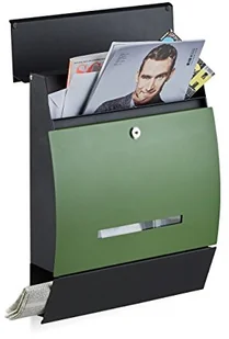 x szer. x gł. : ok. 28 x 33 x 10 cm - Materiał: Metal (stal galwanizowana, malowana proszkowo) - Kolor: czarny z żółtym, białym, zielonym lub czerwonym Nowoczesna skrzynka na listy z przegrodą na gazety - Metaliczny design - Wyraźne, geometryczne kształty - Półokrągły profil - Napis POST w prawym górnym rogu - Z wąskim, poziomym okienkiem - Zamykana na kluczyk zapasowy Naścienna skrzynka na listy z przegródką na gazety - Rolka na gazety do czasopism, katalogów itp.