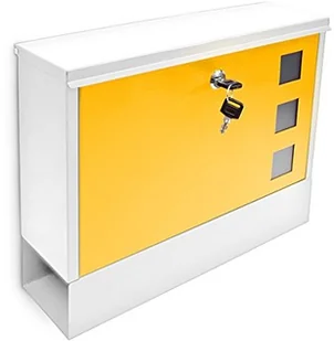 Relaxdays Skrzynka na listy ze schowkiem na gazety, wys. x gł.: 30 x 36 x 10 cm, metalowa, z 2 kluczami, nowoczesna skrzynka pocztowa, biało-żółta