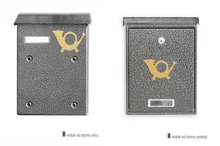 Skrzynka pocztowa prostokątna model 2O montowana od wewnętrznej strony ogrodzenia. obsługa małych i średnich przesyłek, - materiał: blacha ocynkowana elektrolitycznie, - powłoka proszkowa, -wymiary zewnętrzne: 220x280x80/100(SxWxG mm), - otwór wrzutowy 200x12mm (SxW), - format korespondencji - B5, - 2 klucze w zestawie, - waga 1,8 kg, - produkt polski Szczegółowy schemat do pobrania w karcie. Dostępne kolory: