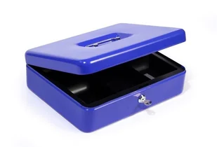 Kasetka na pieniądze HF-M300A NIEBIESKA metalowa kasetka na pieniądze o zaokrąglonych brzegach zamykana na klucz funkcjonalne przegródki na monety i banknoty wygodny uchwyt do przenoszenia kasetki dostępne kolory: czerwony i niebieski wymiary: 300x240x90 mm