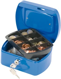 mała kasetka na pieniądze wyprodukowana z lakierowanego proszkowo metalu odpornego na zarysowania