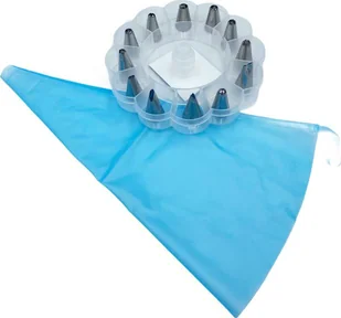 - Zestaw 12 końcówek do dekoracji z rękawem silikonowym i adapterem.