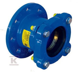 Łącznik służy do naprawy lub połączenia rurociągu w sposób szybki, bezpieczny i skuteczny. Może być stosowany przy łączeniu rurociągów stalowych, żeliwnych, azbestowo-cementowych, PVC z armaturą kołnierzową. Łącznik składa się z korpusu, pokrywy dociskowej i stożkowej uszczelki z elastomeru.