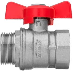 Kurek kulowy Millenium, o standardowym przepływie, 25 mm (1"), gwint wewnętrzny / zewnętrzny, z pokrętłem motylkowym, marki Invena. Zawór odcinający pełnoprzelotowy, z dławicą z PPSE, przeznaczony do montażu w instalacjach sieci wodociągowych i centralnego ogrzewania. Charakteryzuje się podwyższoną wytrzymałością i odpornością na temperaturę. Posiada izolowaną rączkę, zabezpieczającą przed poparzeniem. Maksymalna temperatura robocza: