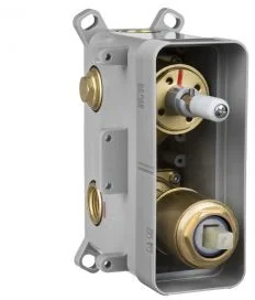 Z kolei mieszaczowy można łączyć z dwoma lub trzema odbiornikami wody. Samodzielny wybór poszczególnych elementów umożliwia zestawianie ze sobą różnych wzorów rozet i kształtów głowic, dysz czy słuchawek BOX podtynkowy mieszaczowy składa się z obudowy z tworzywa sztucznego i mosiężnego korpusu, instalowanych w pierwszej fazie remontu. Następnie montuje się elementy natynkowe (rozetę z dźwignią i pokrętłem), dopasowane do wybranych kolekcji łazienkowych z oferty Deante.